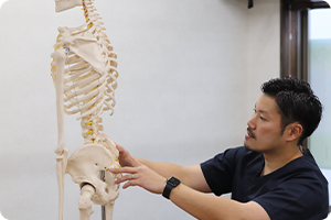 現在の身体の状態をお調べしていきます。姿勢のチェック、関節の動きにくさなどしっかりと検査を行うことで、症状の根本原因を特定していきます。痛みとは離れた場所に原因があることも多いため、普段のお体の使い方やクセなどを見極めることが重要です。